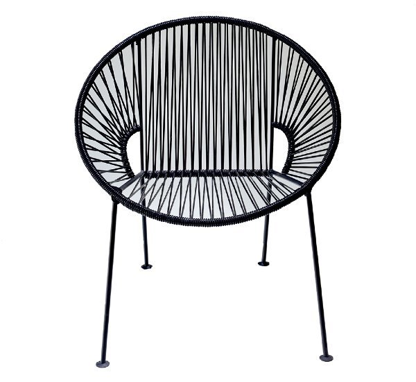 Made of black PVC cord and black steel frame. ~14" Seat Height. Dimensions 25 40/41 x 27 5/9 x 28 14/19